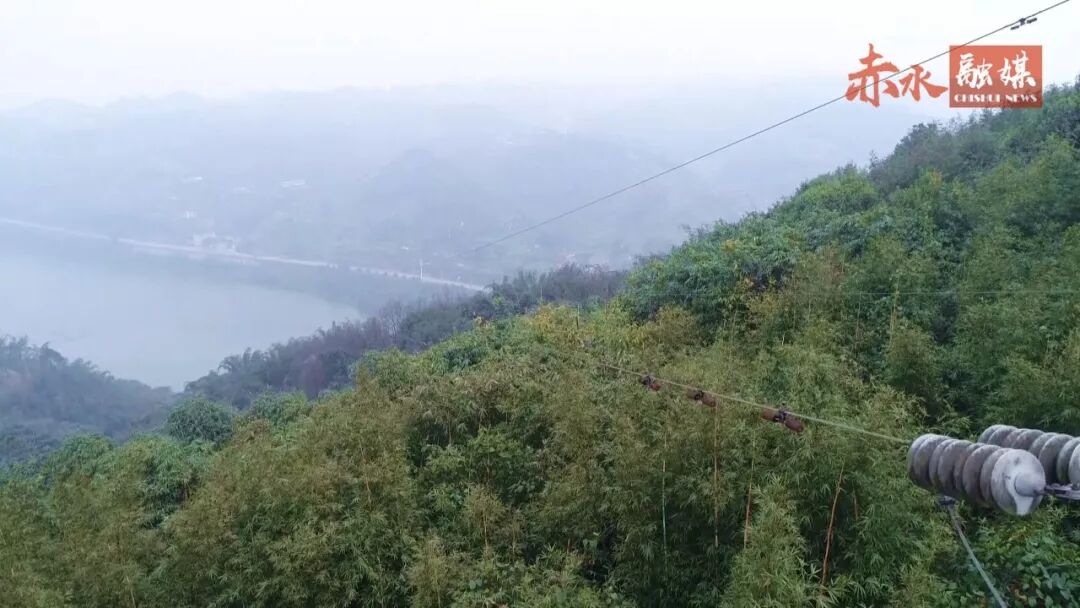 跨过赤水河,无人机还要飞跃连绵的竹海森林,才能近距离查看到铁塔和线路的情况。