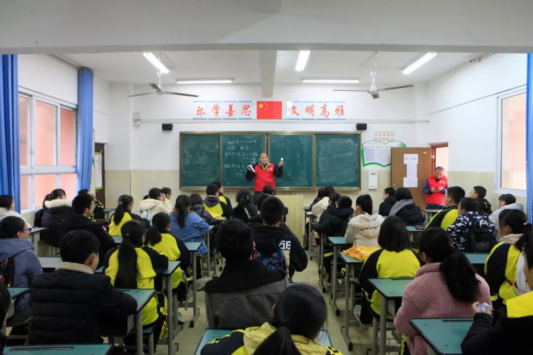 赤水供电局党员志愿者走进赤水市文化中学,向学生们发放了安全用电宣传资料,普及了安全用电知识。安全课上,志愿者利用通俗易懂的语言,向学生们讲解了安全用电和节约用电知识,告诉学生们在生活中要提升防范意识,杜绝发生触电事件。在家中不要用湿手插电源插座和换灯泡,离开时关好不用的电器设备,节约用电;在春节期间燃放烟花爆竹时,要在空旷无人、无电力线路的地方燃放,预防火患的发生。
