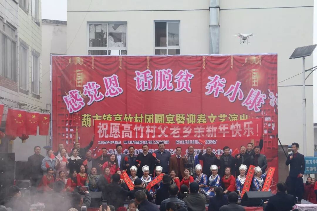 高竹村是葫市镇较为边远的高寒山村,海拔900余米,距葫市集镇22公里,全村598户,总人口2032人,地域面积 19.2 平方公里。以前,全村信息闭塞、交通不便,人们过着出行靠走、通讯靠吼和安全靠狗的苦日子。2014年脱贫攻坚中,高竹村被列为省级二类贫困村。近年来,在国家脱贫攻坚惠民政策的精准滴灌,市、镇、村帮扶干部的精准帮扶下,通过全村群众的的共同努力,修建通组63.3公里,其中泥结实路10.3公里,水泥硬化路53公里;村民饮用水池22口,山塘一口,饮用水管40余千米,598户农户饮水均达到安全饮水标准。2013年政府引进岛湖、天鹅堡两个高山旅游度假项目,解决当地200多人就业,让2000多周边农村劳动力就地务工。2017年高竹村摘掉贫困村穷帽,顺利出列脱贫,全村基础设施得到明显改善,群众幸福指数明显增强,全村人民过上了幸福美好的新生活。