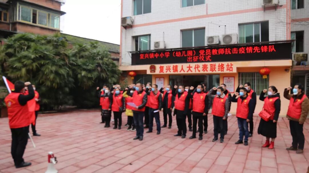 宝源乡 当前,全国上下正打响一场新型冠状病毒感染的肺炎疫情防控阻击战,宝源乡广大党员纷纷身先士卒,争当疫情防控先锋,共同守护群众生命安全。 “近期尽量在家,不要外出,尽量不要走亲访友,不要聚餐吃饭,有事必须外出的时候一定要戴上口罩……”,在宝源乡各个角落,总能看见一个个身穿红马甲的党员志愿者正在进行疫情防控知识宣传。目前,宝源乡对疫情防控工作实行网格化管理,除日常乡、村、组干部包保外,将党组织网格化管理运用到防控工作中,以网格为单位,以在村内任职党员为网格组长,无职党员作为包保党员,对全乡2637户群众落实网格化包保,负责为群众普及防疫知识,引导群众增强防控意识,营造群防群控氛围。目前,宝源乡共建立临时党支部1个、临时党小组6个、党员突击队8支,划分了36个网格单元,149名党员参与网格包保。 除参与群众包保外,部分党员还在回龙桥、城门洞、大岚坳三处路口参与路口防控工作,阻断病毒的传播途径。同时,党员充分利用党员微信群、电话等途径,积极参与到婚丧嫁娶等各类聚集性活动及外来人员的摸排当中,联防联动有效减少群众聚集,坚决杜绝疫情发生。截至目前,全乡共动员取消宴席11场,劝返参加丧事酒席人员80余人,共有171名党员参与疫情防控工作。 复兴镇 疫情当前的危难时刻,复兴镇党员干部当仁不让、挺身而出,将人民利益高于一切的宗旨牢记心中,不忘初心、牢记使命,扎实开展工作,充分发挥先锋模范作用。 “面对新型冠状病毒疫情,在党和人民最需要的时候,作为中共党员,我们责无旁贷、我们义无反顾,我们已经从思想上、行动上做好充分准备,只要复兴党委、政府一声令下,随时到人民最需要我们的地方去尽绵薄之力......”激昂的声音回响在复兴镇政府广场上空。1月31日下午,由赤水四中、复兴小学(幼儿园)的29名党员教师组成的抗击疫情先锋队在复兴镇政府签下了“请战书”。随即听从组织安排迅速投入到疫情防控工作中。 “老人家,要勤洗手,鸡鸭都圈起来,用消毒液兑水后经常消下毒。”“学校推迟开学,孩子们在家多温习一下功课,不要四处玩耍。”党员教师先锋队队员们,不厌其烦地向群众宣传着防控知识,引导孩子们耐心居家,并影响父母不随意外出聚集。 在复兴镇8个村(社区),党员干部挨家挨户排查外出返乡人员,记录相关信息,面对疫区归来的人员细致询问、耐心安抚,登记暂时居家观察的群众的需求,让他们安心在家渡过观察期。 在当前防控新型冠状病毒感染肺炎的严峻斗争中,复兴镇9支党员队伍齐心协力,用行动践行着“随时准备为党和人民牺牲一切”的铮铮誓言。 赤水市人民医院 1月30日,赤水市人民医院党委成立了“赤水市人民医院阻击新型冠状病毒感染的肺炎疫情医疗救治组临时党支部”、“赤水市人民医院阻击新型冠状病毒感染的肺炎疫情后勤保障临时党支部”。 医疗救治组临时党支部由党委书记代铁荣担任支部书记,支部成员是医疗救治一线和重点科室的16名党员同志;后勤保障临时党支部由党委副书记田琼担任支部书记,支部成员是行政后勤保障科室的13名党员同志。 1月31日下午,两个临时支部全体党员面对党旗庄严宣誓:将牢记人民利益高于一切,发扬不畏艰险、无私奉献的精神,众志成城、全力以赴、攻坚克难,坚定站在疫情防控第一线,做到哪里任务险重就冲锋到哪里,坚决打赢疫情防控阻击战。 医疗救治临时党支部宣誓和挂牌 (来源 赤水市人民医院)
