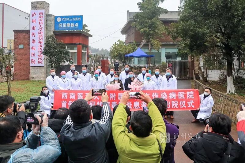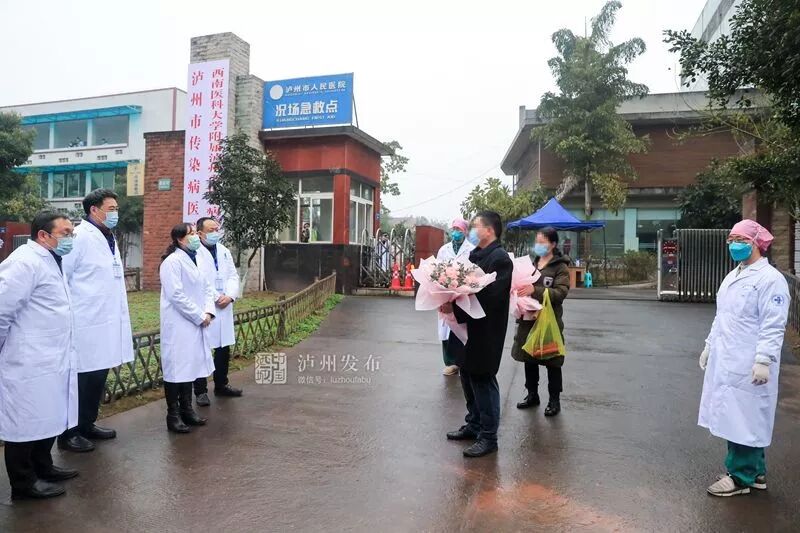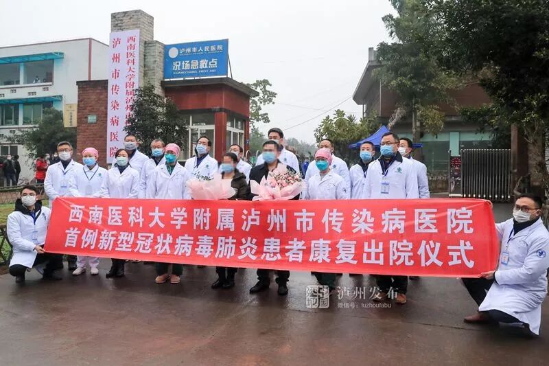 2月8日17时30分,在西南医科大学附属泸州市传染病医院,泸州首批2例新冠肺炎患者治愈出院,其中包括泸州首例确诊患者。