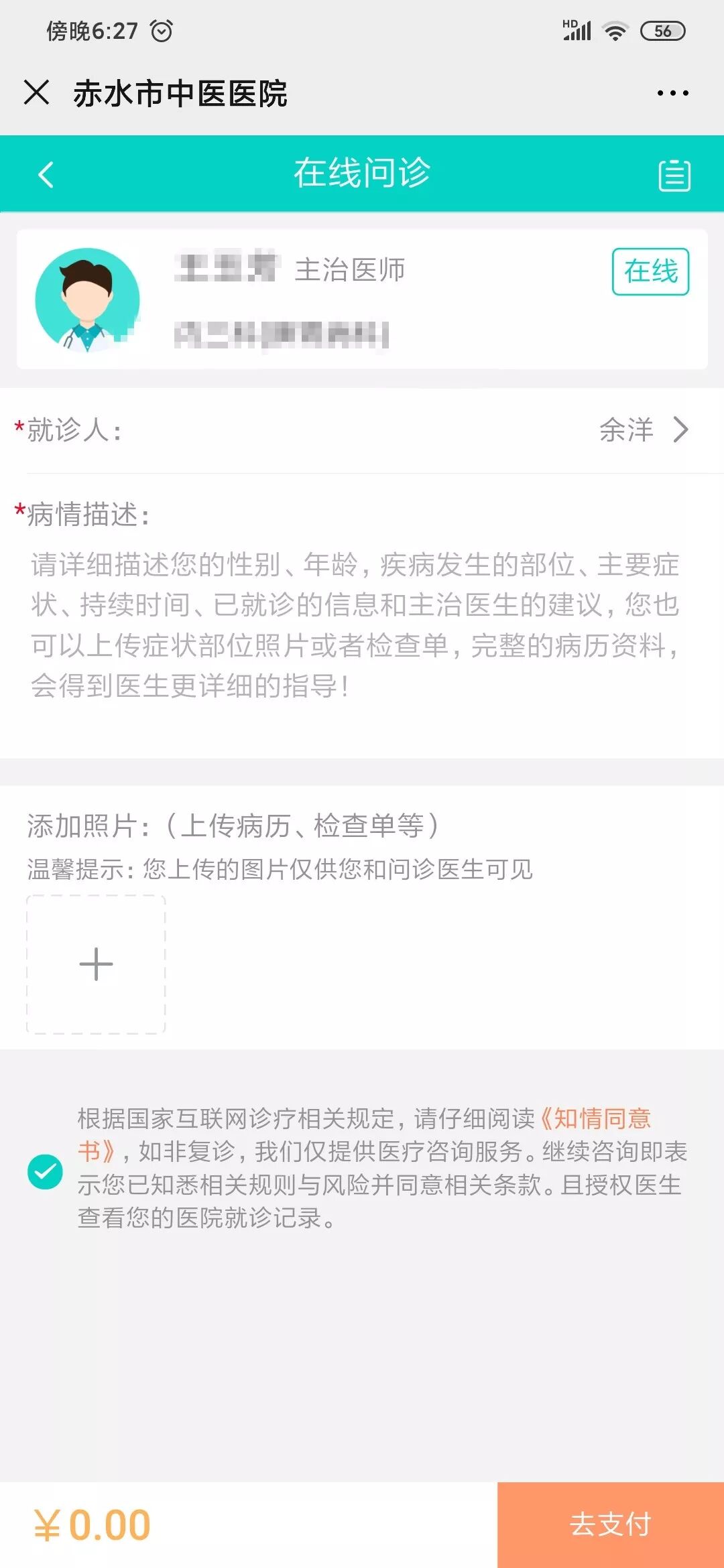 当前是疫情防控的关键时期,为了切实解决老百姓看病就医的实际需求。2月7日,赤水市中医医院开通“赤水市中医医院微官网”微信服务号,助力抗击疫情,充分发挥线上诊疗优势,开通线上免费问诊、发热门诊、网上挂号、手机缴费、免费上门采集检验标本,免费送药上门等服务。即日起,患者只需关注“赤水市中医医院微官网”微信服务号,便可免费享受医生24小时在线服务,让广大市民不出家门,也能看病就医!