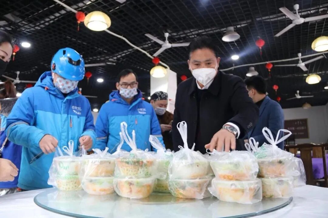 2月22日中午,一辆装满盒饭的配餐车驶进文华街道严家社区同心小区疫情防控检查口,将新鲜烹饪的饭菜第一时间配送到值守人员手中。“在这样严寒的冬天,能吃上一份热腾腾的饭菜,心里很温暖。”接过饭菜的志愿者说道。据了解,从2月1日至今,文华街道商会始终坚持每天为奋战在一线的工作人员免费配送爱心盒饭。