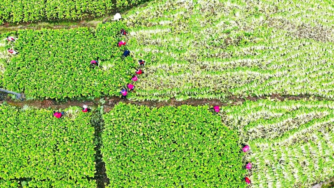 当地党委政府积极组织党员干部来到田间地头,帮助农民抢收青菜,用于制作成盐酸菜,增加储存时间和附加值。