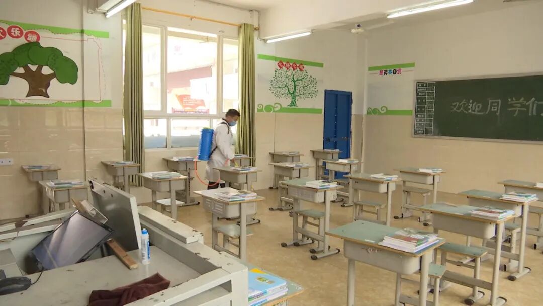 对此,赤水市教育局积极协调,由交通部门安排部署9辆专线公交车,进行5条线路的学生接送任务,卫健部门则负责校医配置、体温检测与除菌消毒,每天实时掌握全校师生体温信息,并对学校内公共区域进行消杀灭菌。