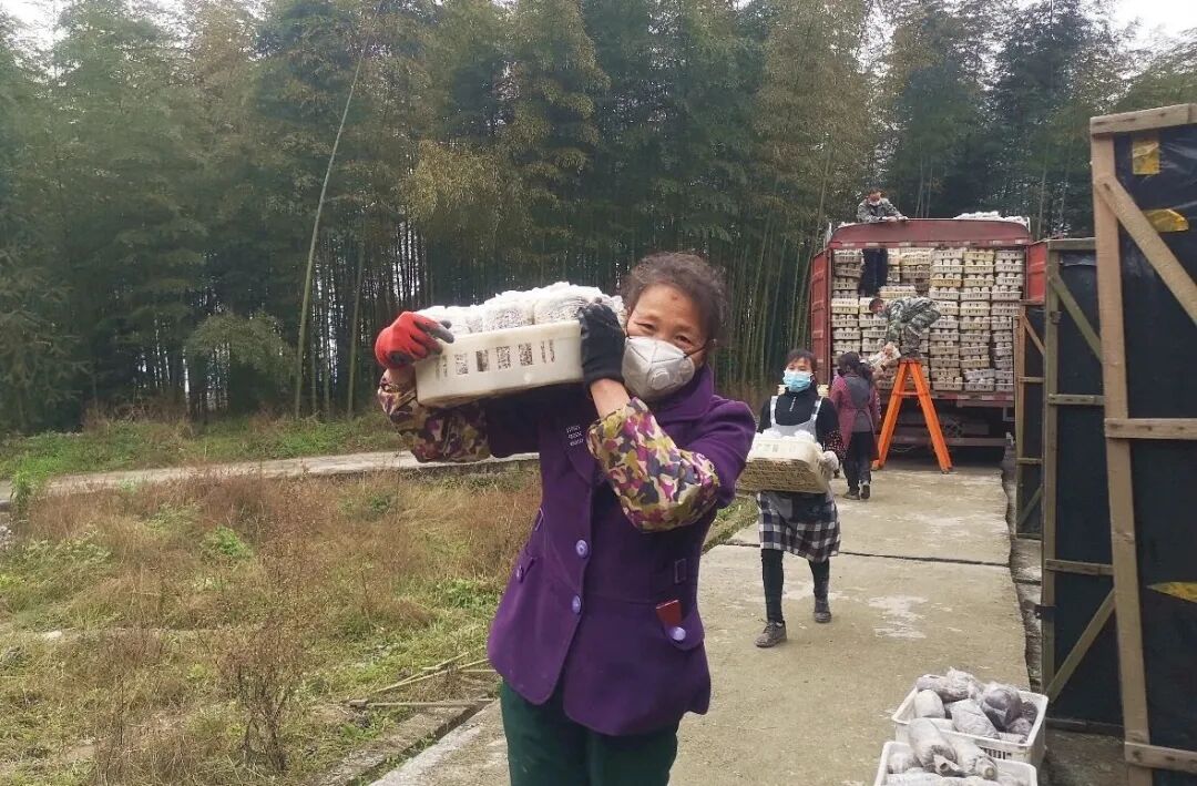 3月12日,长期镇红卫村食用菌培育基地内一片繁荣的景象,七八个村民正在紧张有序地将培育好的茶树菇菌棒搬运上架……村民脸上带笑,空气中散发着喜悦。