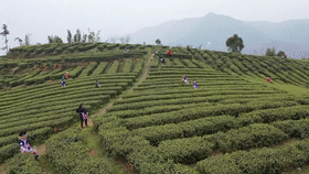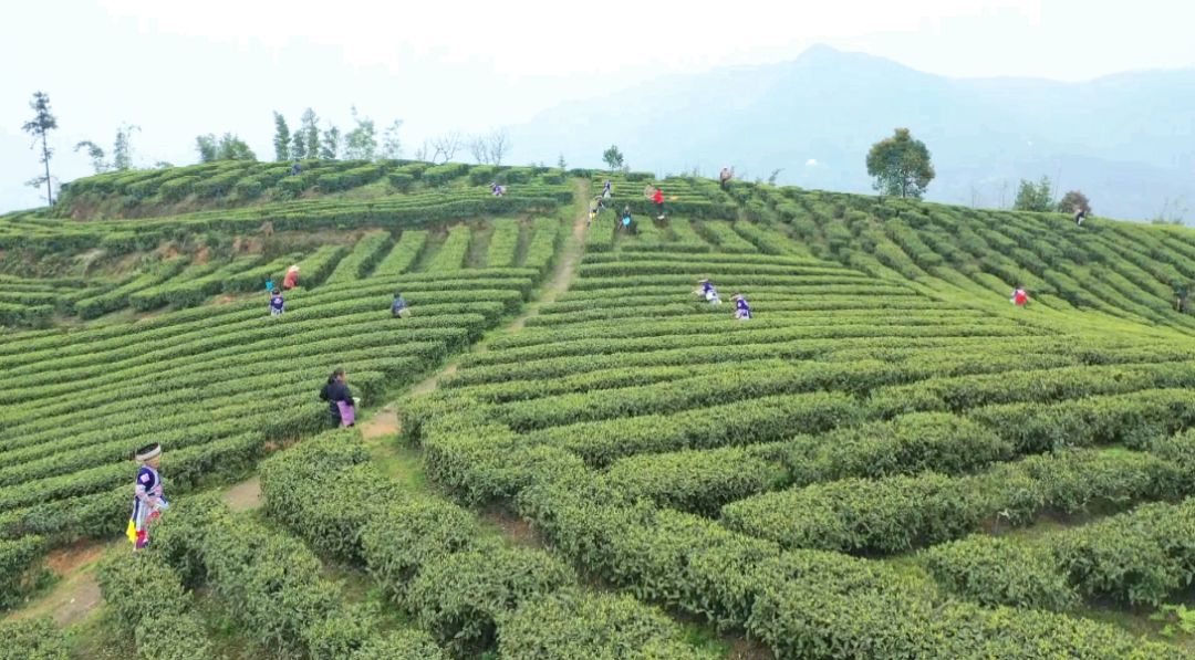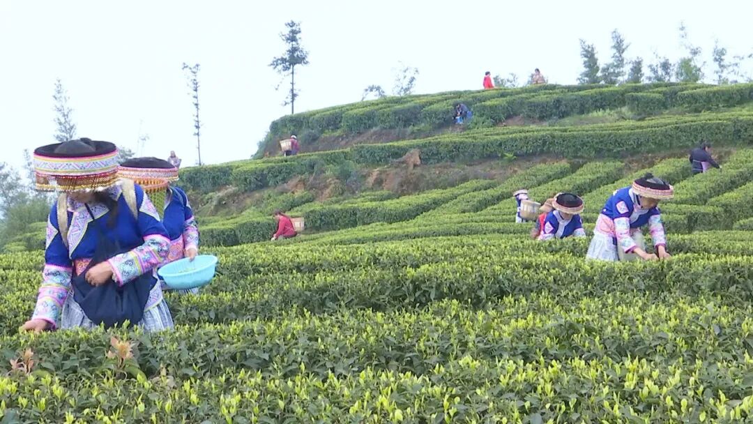 每到茶叶采摘时节,村里都会组织附近的建档立卡群众来到茶园采茶,因为不用外出就能就近务工,并且工作基本上可以从初春持续到六月底,春茶不仅绿了荒山,也让当地群众腰包渐鼓。