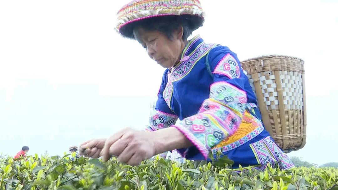 大同镇易地搬迁群户,今年75岁的丁国全老人也是采茶队伍中的一位,从今年二月份开始每天都来。“每年都采茶,这片茶山养活不少人,采到四月份能攒5000块钱。”丁国全一边说一边手上也没停下,满脸的喜悦。
