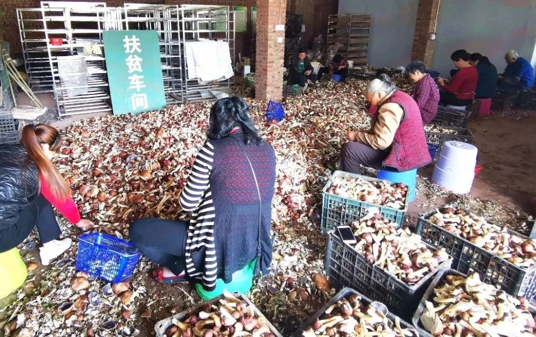 村民们抓紧时间采摘赤松茸,将赤松茸运往烘干房处理,鲜品通过订单销往本地及周边市场,烘干后的干品则通过淘宝、京东等平台进行网上销售。