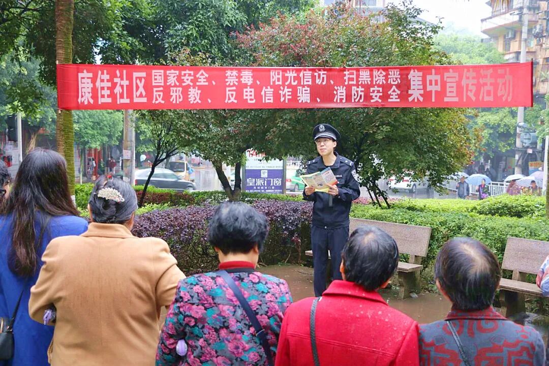 图为4月21日,赤水市市中派出所联合康佳社区党总支部开展国家安全、禁毒、消防安全等集中宣传活动