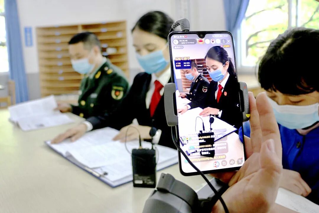 图为4月23日,赤水市人民法院工作人员通过线上直播讲解《反家庭暴力法》等法律知识