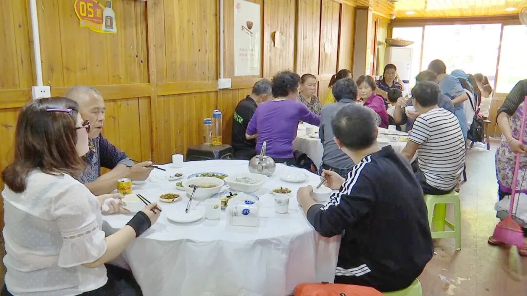 中午12点,丙安古镇餐馆、农家乐座无虚席,当地腊肉、豆花、冷水鱼等摆上了餐桌,游客们吃的津津有味。遵义游客敖弟莉说道“我们特地点了当地的特色美食,我觉得在当地的餐馆吃午餐还是比较实惠的。”餐桌上游客忙着吃,老板也忙前忙后,招呼客人备菜上菜。五一长假期间,游客的增量让古镇上的餐饮消费一下子又“活”了起来。丙安古镇餐馆老板王雪辉说道:“今天中午有五六十桌,我都忙不过来,亲戚这些也来帮忙,从春节至今,好久没有这样热闹了。”在丙安古镇各土特产店里,老板正忙着给游客们推介当地的农特产品,游客们与老板商定好了价钱后,将大包小包的特产装进了背包,当地的土特产销售也“回暖”了不少。货架上摆满的竹荪、金钗石斛等当地农特产品备受游客青睐。五一假期期间,游客量的增加带动了当地不少农特产品的销售。天津游客杨殿芳说:“听朋友讲赤水的石斛很有名,今天还看到竹荪,各种都买了一些,回去品尝后,如果说还可以的话,留了电话到时候再采购,可以邮寄的。”(记者:何芳)