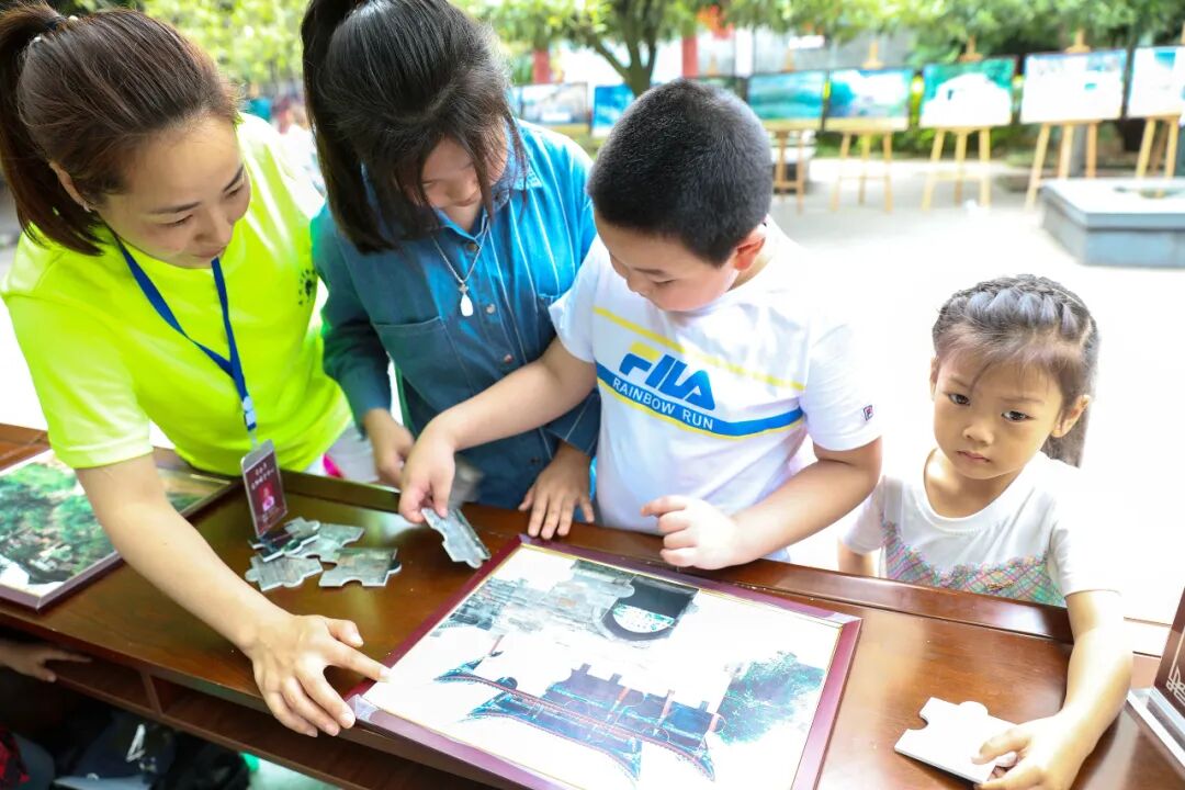 活动现场,人头攒动。志愿者和小朋友们玩起了“拼图游戏”,以寓教于乐的形式,引导小朋友们了解家乡历史文化、树立文化自信。