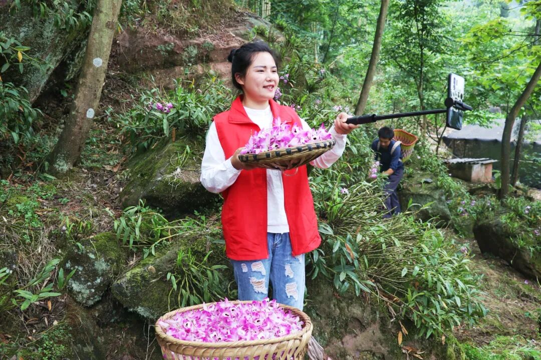 “你们可以看到,我身后这一片就是金钗石斛。现在正是它开花的季节,大家都在忙着采摘石斛花。”……
