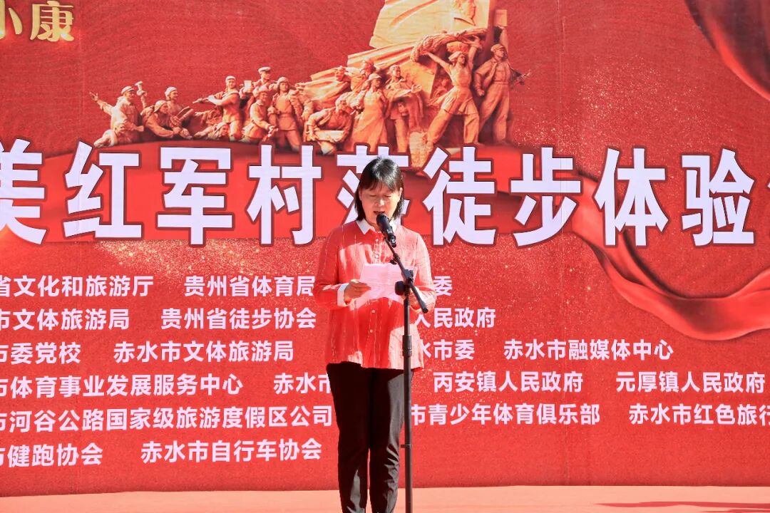 - 5月23日,贵州省2020重走长征路(第二轮)活动之“重走长征路,聚力奔小康”——寻找最美红军村落徒步体验活动在赤水市举行。活动启动仪式上,省文化和旅游厅副厅长李芳发布了全省首批10条“最美红军线路”并发出寻找最美红军村落的倡议。