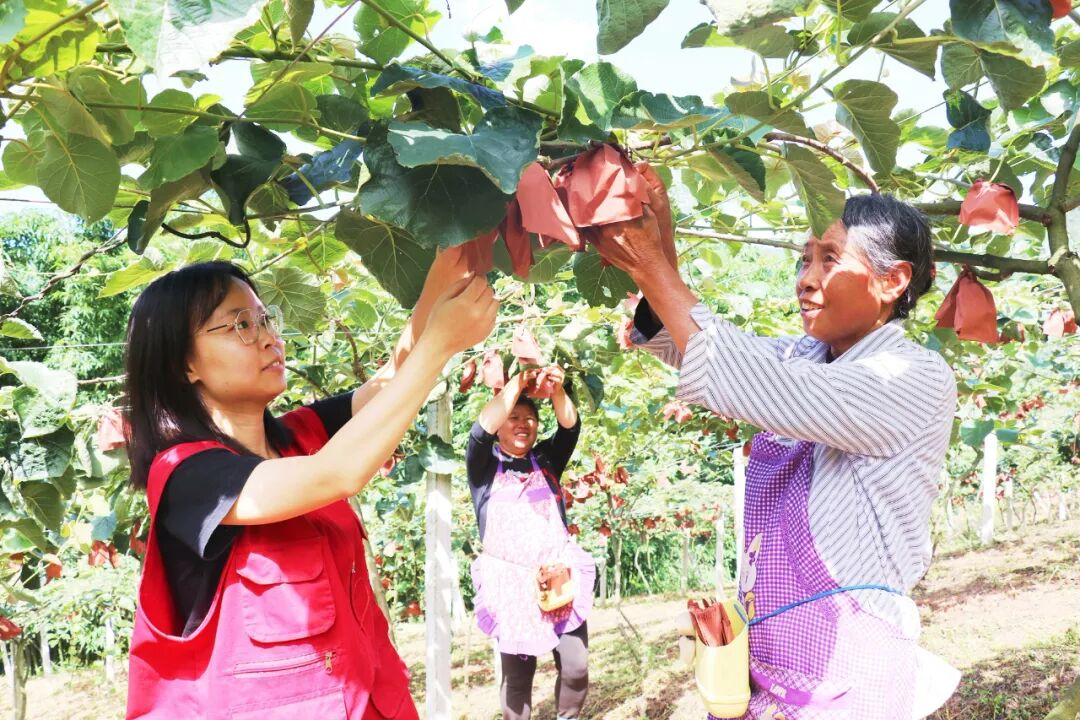 在赤水市丙安镇三佛村的猕猴桃基地里,党员干部和工人们顶着烈日,在田地间忙着给猕猴桃穿“新装”,大家脸上洋溢着即将收获的幸福笑容。