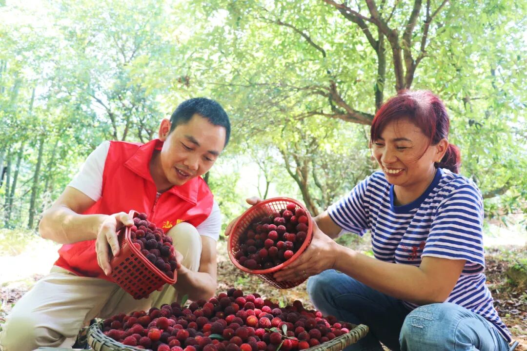 杨梅保鲜期短,成熟的果子必须及时采摘。得知这一情况后,桫管局党员志愿者利用休息时间,自发组织上山帮助农户采摘、搬运、销售杨梅。