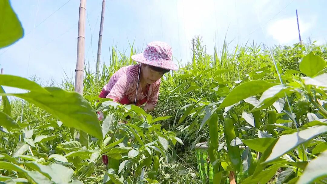 在长期镇合云村,周边村民趁着天气晴好在新建的蔬菜基地里忙着采摘豇豆与青椒。村民们告诉记者,他们每人每天都要采摘上百斤豇豆和青椒,即便如此,也还要抓紧时间,赶在成熟的蔬菜变质之前采摘进行处理。在村民们采摘蔬菜的同时,蔬菜基地的技术指导袁贵火也在基地内不断查看蔬菜长势,并指导村民们对蔬菜进行病虫害防护。