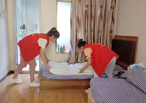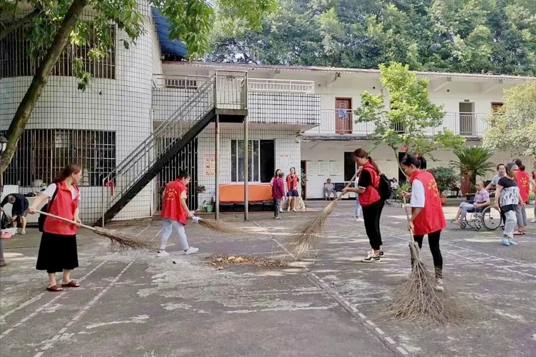 志愿者们到达老年公寓后,志愿者们领取工具打扫卫生、清理庭院、规整杂物、整理床铺、收拾房间……