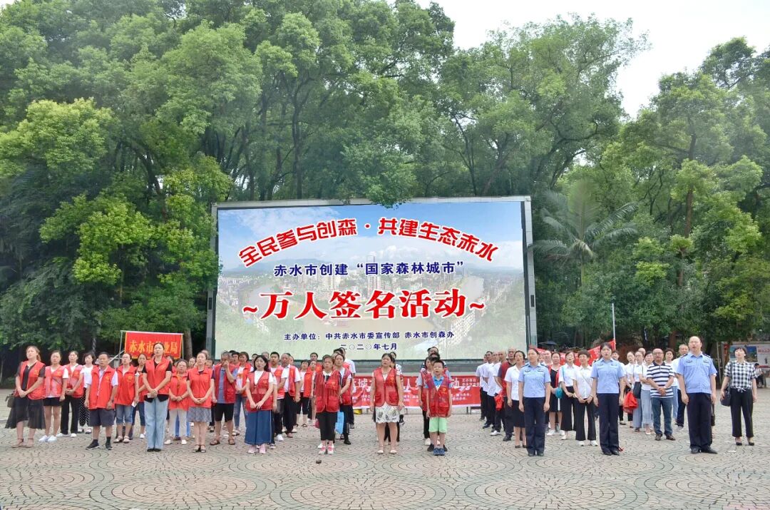 - 7月16日,我市举办创建国家森林城市万人签名活动。活动开始前,150余名干部群众在广场上列队呼喊创森口号,表达了赤水人民勠力同心创建国家森林城市的热情和心声。