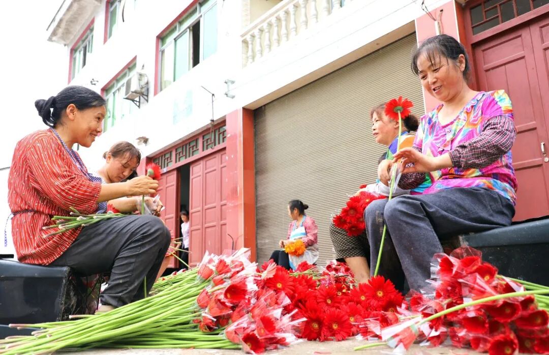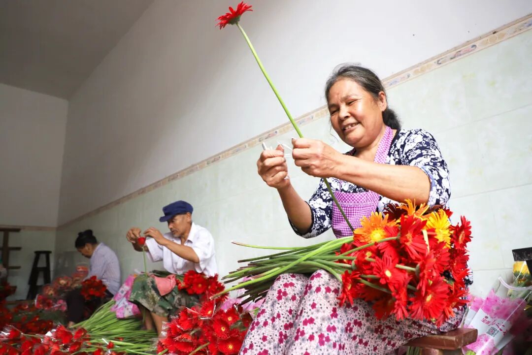 市场蛋糕越做越大,销售方式也逐渐多元。“非洲菊200支”“组合装100束”……电话、微信、朋友圈,都成了销售的主场,订单一到,村民就在基地采收包装为客户“配货”。