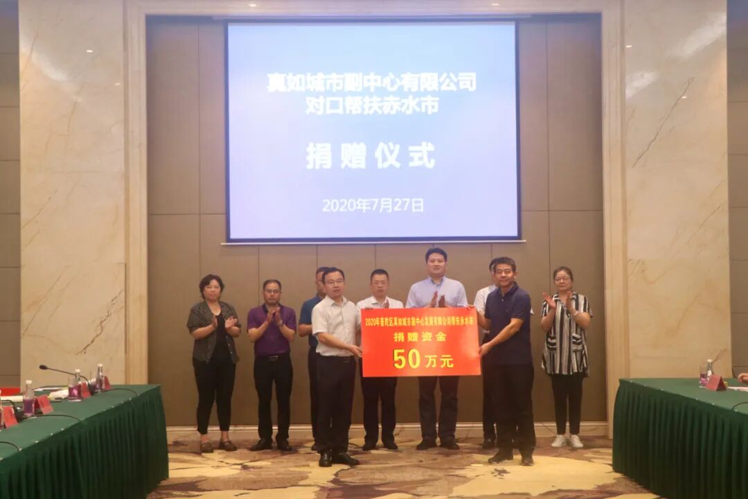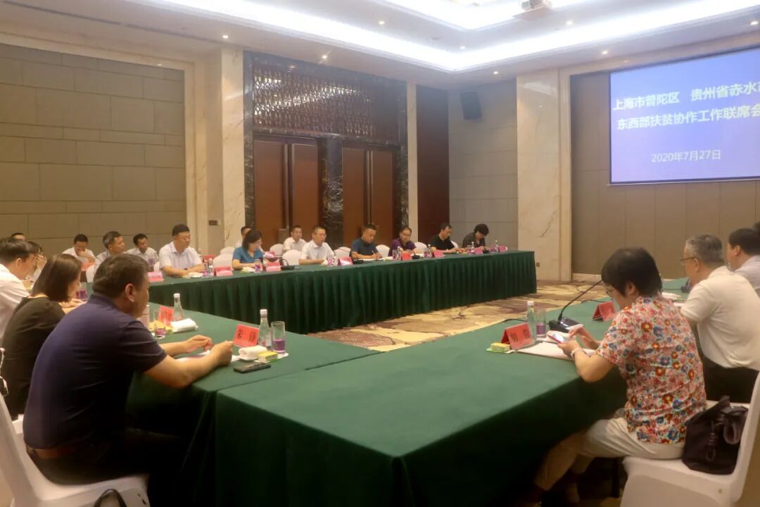 朱煜代表市委、市政府对普陀区的帮扶表示感谢。他说,自2013年以来,普陀区对赤水倾心相助、倾情奉献、倾力帮扶,把普陀的好经验、好理念、好作风、好资源带到了赤水,为推动赤水经济社会高质量发展和打赢脱贫攻坚战、全面建成小康社会作出了重大贡献。赤水将牢牢把握双方深化交流合作的重大机遇,用足用好帮扶之力,把扶贫协作各项工作开展得更加精准有效。姜冬冬表示,自开展东西部扶贫协作以来,普陀与赤水结下深厚友谊。2020年是全面建成小康社会,实现第一个百年奋斗目标,也是脱贫攻坚决战决胜之年。普陀将按照上海市委、市政府与贵州省委、省政府的决策部署,秉持“赤水所需,普陀所能”的原则,继续开展消费扶贫、产业扶贫、劳务就业和医疗教育等各项帮扶工作,助推赤水经济社会取得更好发展。会上,普陀区人民政府、普陀区教育局、普陀区西部企业(集团)有限公司、真如城市副中心发展有限公司分别与我市举行项目资金帮扶捐赠仪式。会后,姜冬冬一行在我市领导陪同下,先后到赤天化泰盛纸业和天台镇普陀幼儿园进行实地考察调研。