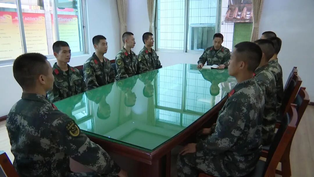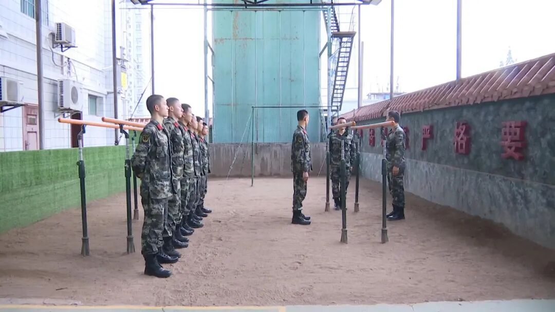 林宰巍说道:“今天早上的操课内容是擒敌术基础动作,这是每名武警官兵的基本功,只有夜以继日地训练,才能确保关键时候冲得上去。”伴着整齐的呼喝声,战士们一拳一掌,一板一眼,十分认真。这群武警战士们,最早的90后“老兵”,入伍已经6年多了,而最年轻的则是去年刚入伍的00后新兵。19岁的黄明便是其中一名,高中毕业后便参军入伍。黄明说:“每天训练都习惯了,就感觉如果今天不训练,我就会觉得这一天中缺少了点什么,就觉得身体会不自在,想动起来。”除了早操训练外,官兵们每天还要在高温环境中进行2个小时以上的军事常规训练,通过单双杠练习、5公里武装越野等机械训练等,磨砺官兵体能、技能和心理素质。对于黄琦来说,日常训练虽然辛苦单调,但他却用一直坚守着入伍的初心。黄琦说:“最难熬的就是每天起床参加五公里武装越野,太累了,但是当兵后悔两年,不当兵后悔一辈子,每一次训练我都努力发挥自己的极致,提升自己的训练水平,坚持入伍初心。”训练是每天“雷打不动”的进行着,与此同时政治学习也是每天的“例课”。今天第一节课是《武器装备管理教育》,教育战士们要把武器装备视作军人的第二生命。屋子里的“手机柜”是存放战士们手机的地方,部队有严格规定,出于保密等原因,战士们不允许随意使用手机,只有在通过申请后,才能在规定时间内取出使用,其他时间只能通过中队的公用电话跟家里联系。在武警中队中,年轻的战士冬练三九,夏练三伏,在汗水和风雨的锤炼中,成长为一个个顶天立地的男子汉,抢险救灾,反恐维稳,他们为这座城市奉献着自己的青春年华。
