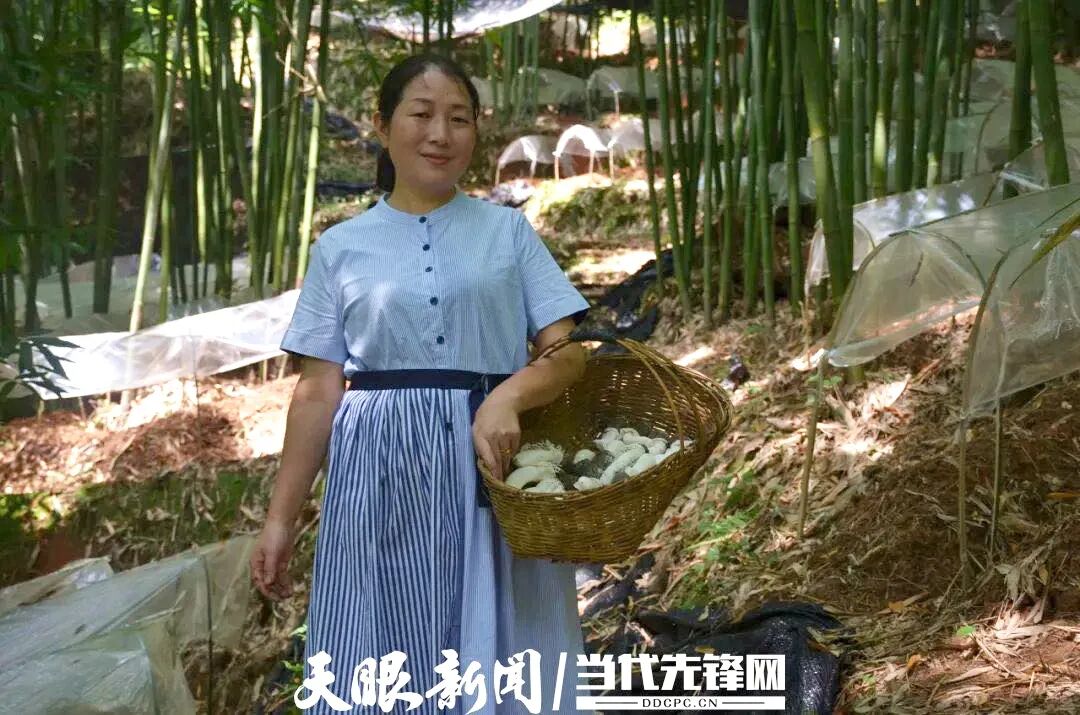赤水市两河口镇林下竹荪种植大户汪大坤采摘竹荪归来。