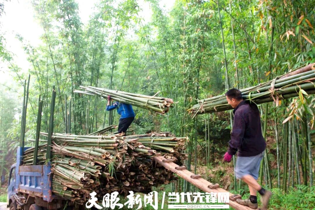 赤水市竹农正在装运杂竹原料,满满的收获。