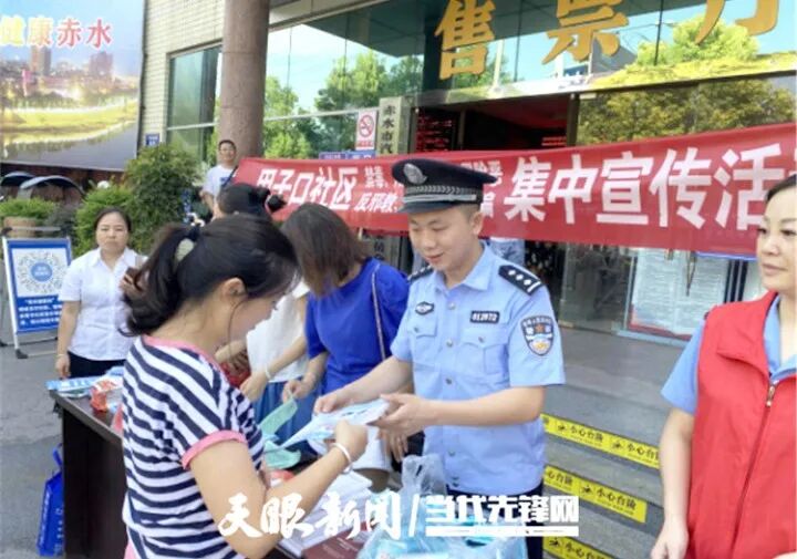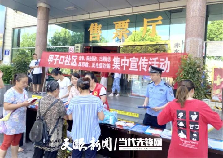 近日,赤水市市中街道甲子口社区党支部联合派出所社区民警在旅游车站开展“防电信诈骗”宣传活动。