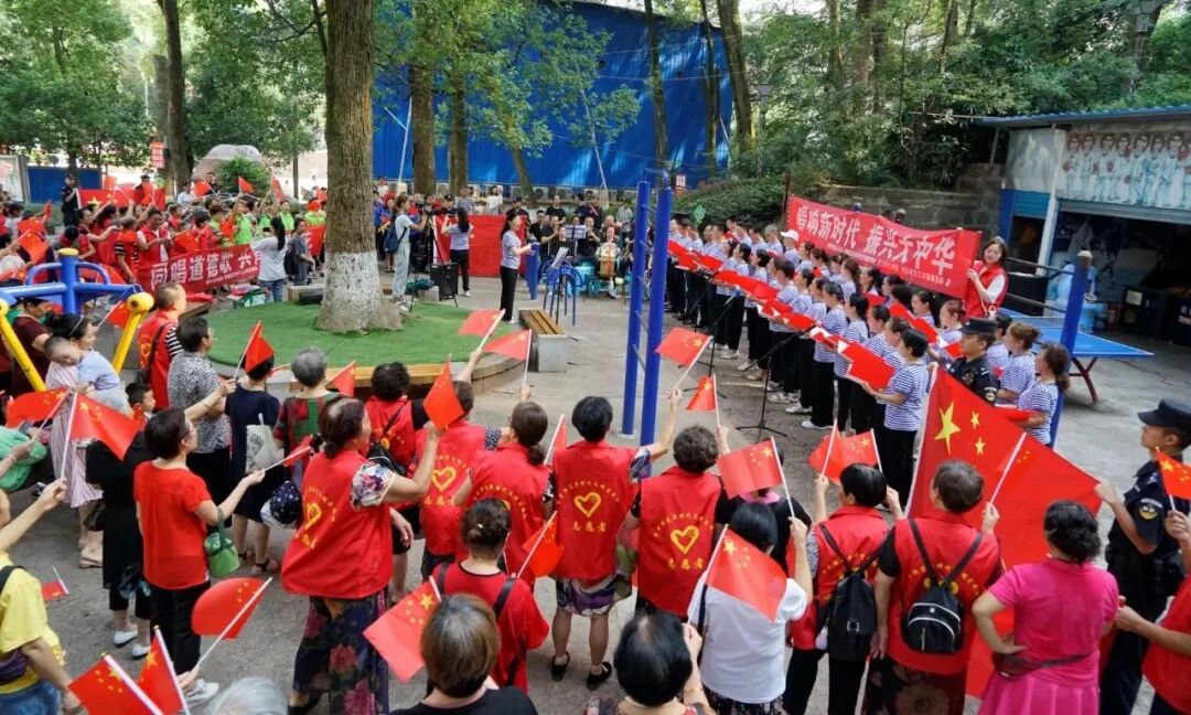 8月21日,在我市文化广场旁的空地上,来自社区、群众、特巡警中队、老干部等200余名志愿者联合开展同唱《公民道德歌》《我和我的祖国》《爱我中华》等经典歌曲快闪活动,通过歌声音传递道德力量,倡导文明风尚。