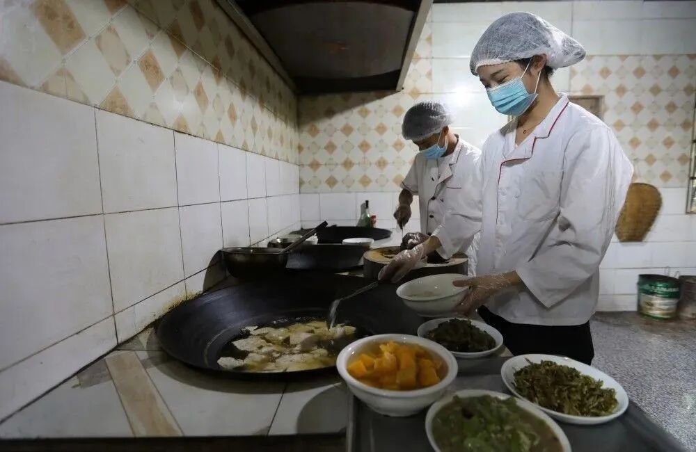↑2020年8月30日,在贵州省赤水市长沙镇一农家院,厨师为游客准备食材。王长育 摄