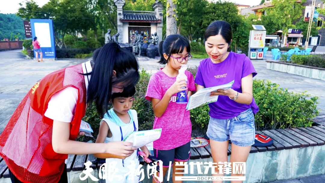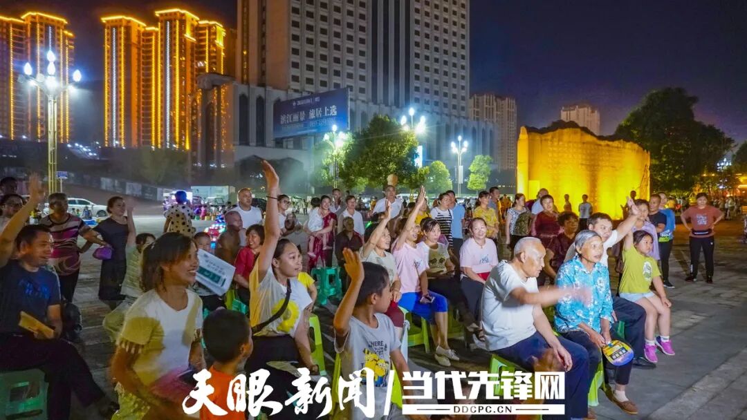 位于赤水市三十里河滨大道旁的凯晟广场,广场舞的音乐已经响起,“舞者”们闻声而动,广场一角,几名身着红背心的志愿者正忙着布置创文知识竞猜活动场地,有的拉横幅,有的摆放桌椅,周围群众也围了过来。
