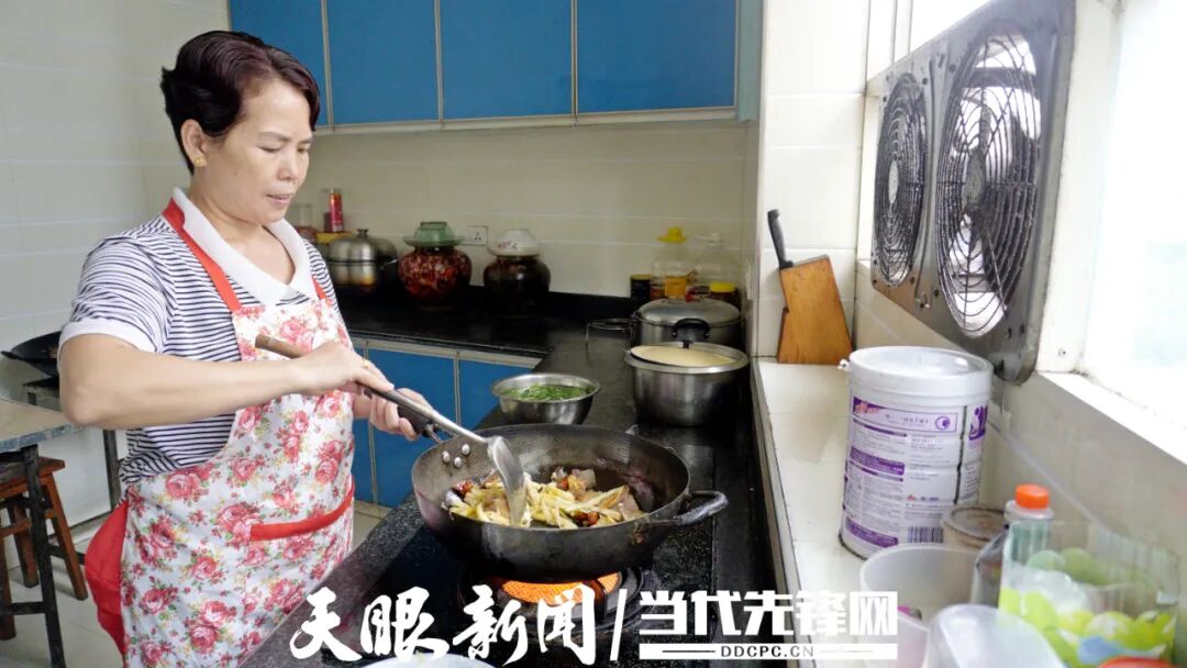 刘思惠挂断电话,做起了当天中午饭的最后一道菜,等上班的丈夫聂新秋一回家就能吃饭。