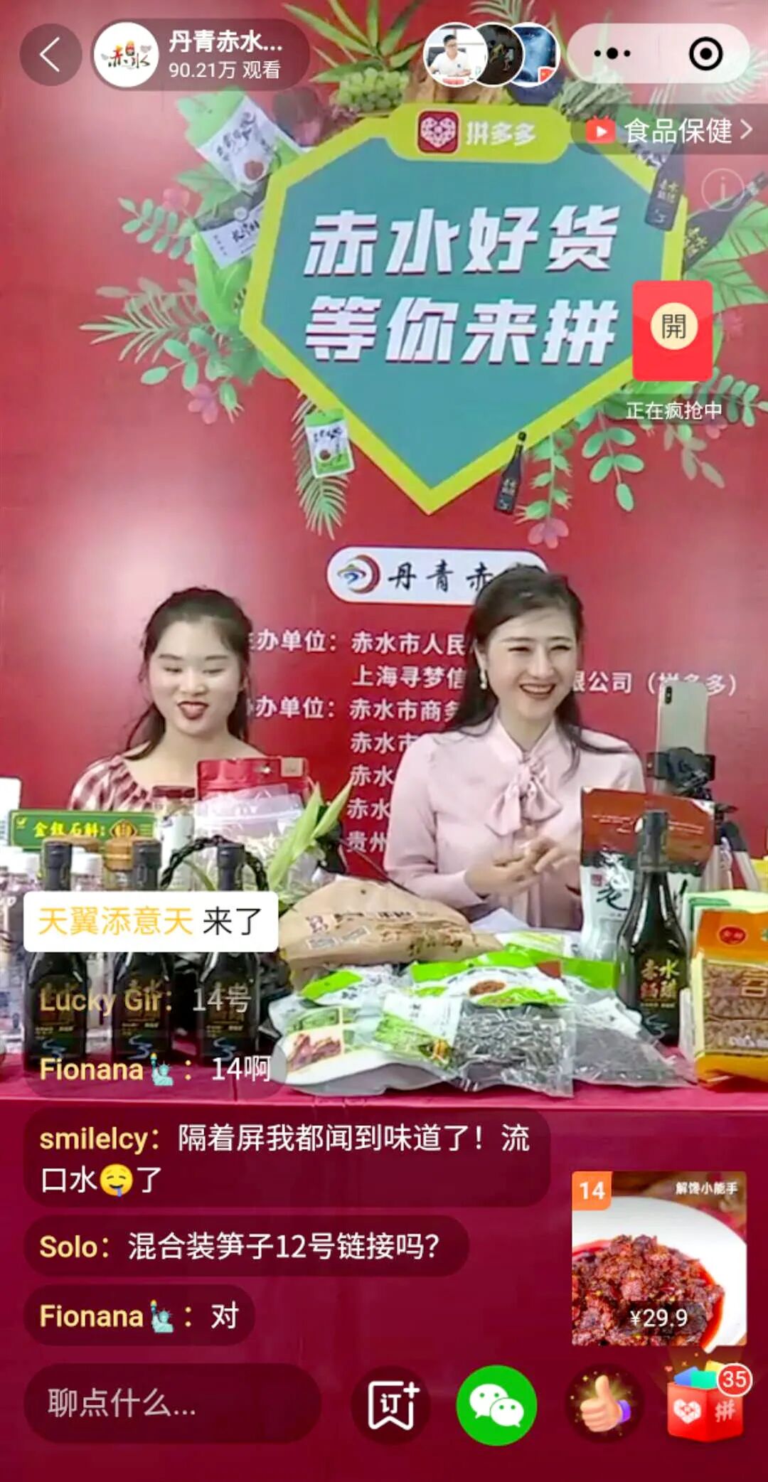 赤水牵手拼多多,“赤水好货 等你来拼”首场直播91.18万人关注、成交4.6万多单、销售163万元