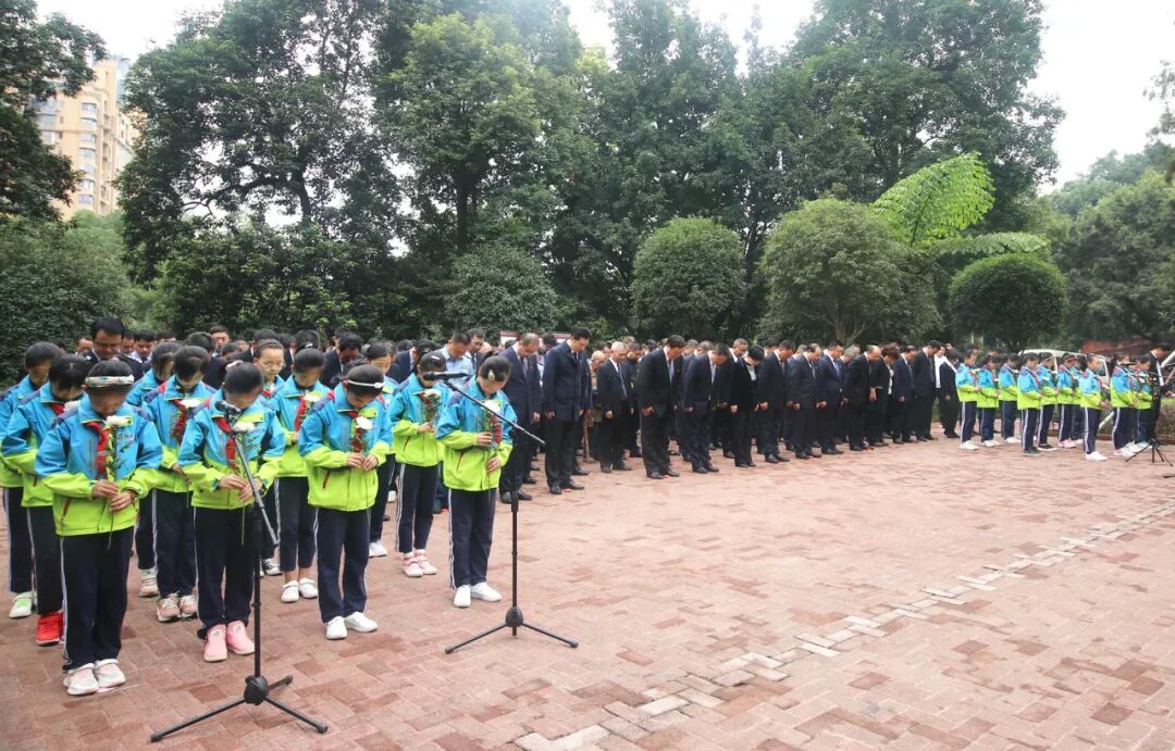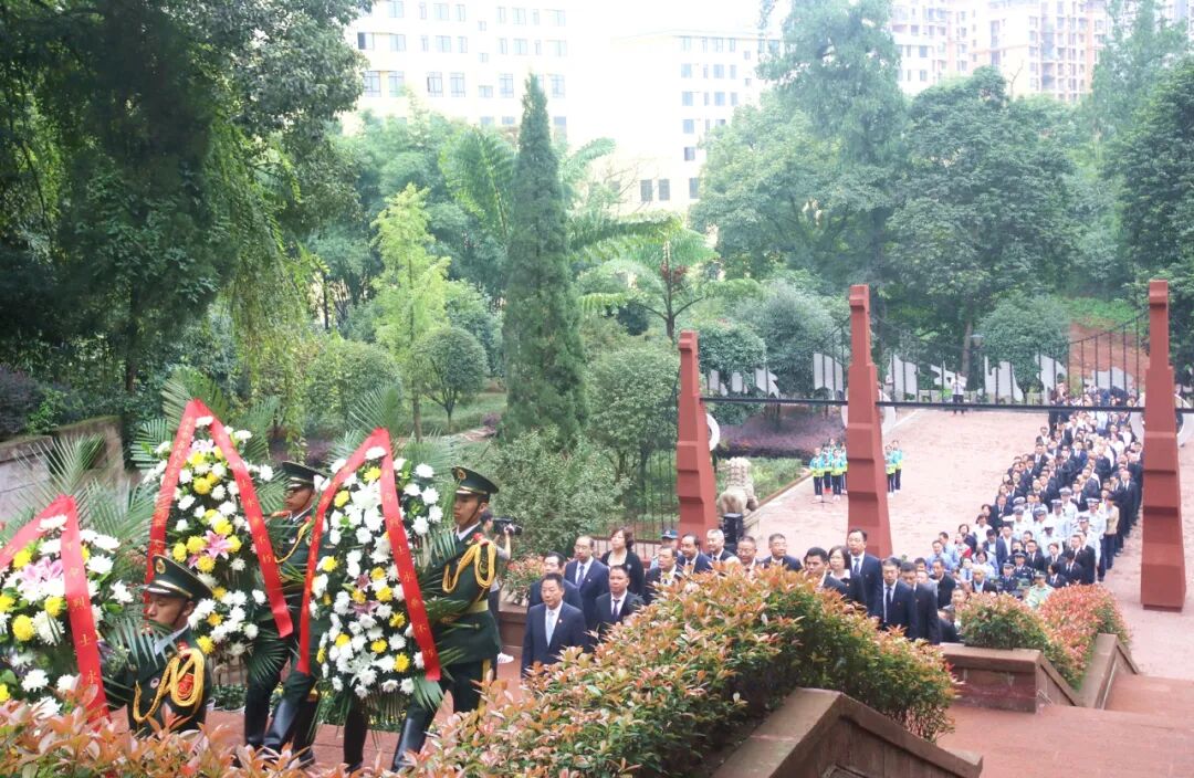 在庄严肃穆的赤水红军烈士陵园,参加活动的党员干部群众手持鲜花,面容肃穆,深切缅怀红军烈士的丰功伟绩。