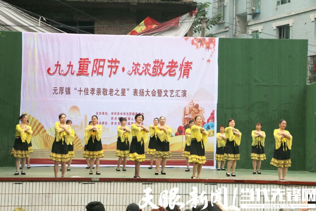 在大同镇民族村,赤水市快乐健身队、丹霞溪谷歌舞队、民族村老年协会等表演队伍给大家带来了歌伴舞、独唱等十余个精彩纷呈的节目。演员们精心准备、盛装出场、精彩表演,不仅展现了“最美不过夕阳红”的精神面貌,也让在座的老人在享受了一次“文化大餐”,丰富了精神生活。
