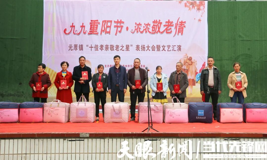 元厚镇新时代文明实践文艺志愿者则和全镇80余名老人们欢聚一堂,共同举办了一场以“久久重阳节·浓浓敬老情”为主题的文艺汇演活动,活动现场还对元厚镇评选出的十名“十佳孝亲敬老之星”榜样模范进行了表彰。