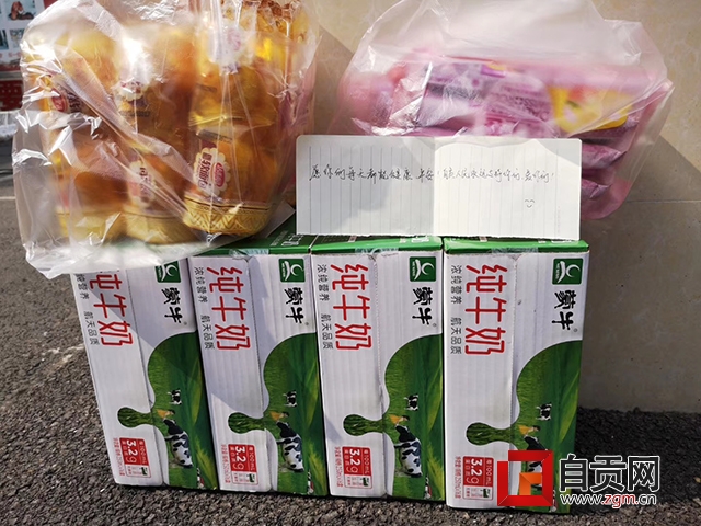 同样的暖心的画面,也在自井大队钟云山路中队、沿滩大队开元路中队、荣县大队二佛街中队、汇东大队汇川路特勤中队等基层中队出现。“愿你们每天都能健康、平安!自贡人民永远支持你们,爱你们!”4月4日下午15时04分55秒,一位身穿白色大衣的小姐姐双手提着2袋面包、4箱牛奶,出现在自井大队钟云山路中队门口,并将东西放下后留下了这张超暖心的纸条。