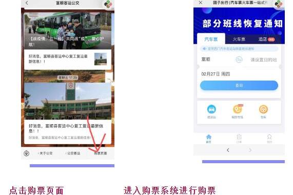 根据《自贡市外出返岗务工人员免费客运专线实施方案》,自2月28日起至3月10日止,我县开通富顺客运中心始发直达至内江高铁北站、宜宾高铁西站、成都高铁东站、重庆高铁西站,宜宾五粮液机场、泸州云龙机场、成都双流机场、重庆江北机场等8条外出返岗务工人员免费客运专线。凡持有我县开具的《四川外出务工人员健康申报证明》且在有效期内,有明确务工地点或单位的外出务工人员,通过“富顺客运公交”微信公众号点击购票页面进行乘车人实名购票(因系统原因,需线上支付1元完成购票,乘车时现场返还),凭乘车人身份证、《四川外出务工人员健康申报证明》购票信息免费乘坐以上客运专线。购票方式为网上专线预约通道,乘客需服从相关疫情防控管理,实名制登记,接受体温检测,全程配带口罩等。咨询电话:富顺县客运中心0813-7213656 、0813-7218188。