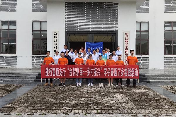 盛夏时分,中国建设银行自贡分行“金智惠民—乡村振兴”学子暑期下乡实践活动火热进行中。在富顺,来自多所院校的学子参与到此次活动中,大学生们同建行自贡分行、富顺支行的工作人员一道把普惠金融服务送到田间地头,把实用技术和知识送到群众身边,把温暖送到留守儿童和贫困户心中。