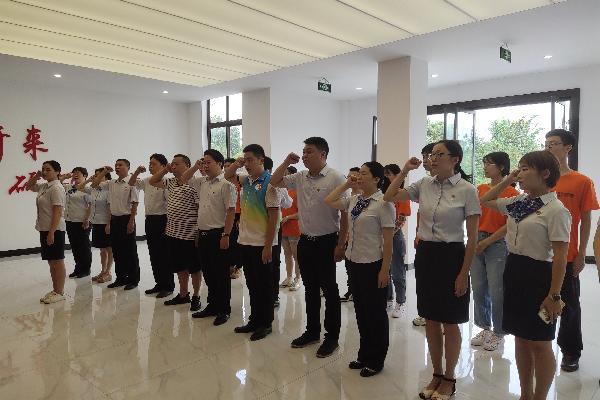 在狮市镇马安村党性教育基地,建行自贡分行的党员们同大学生一道重温入党誓词,不忘初心、牢记使命。大学生们与留守儿童们一起,讲解环保知识、卫生知识等,给村民们普及金融知识,为贫困户、五保户讲解国家政策。
