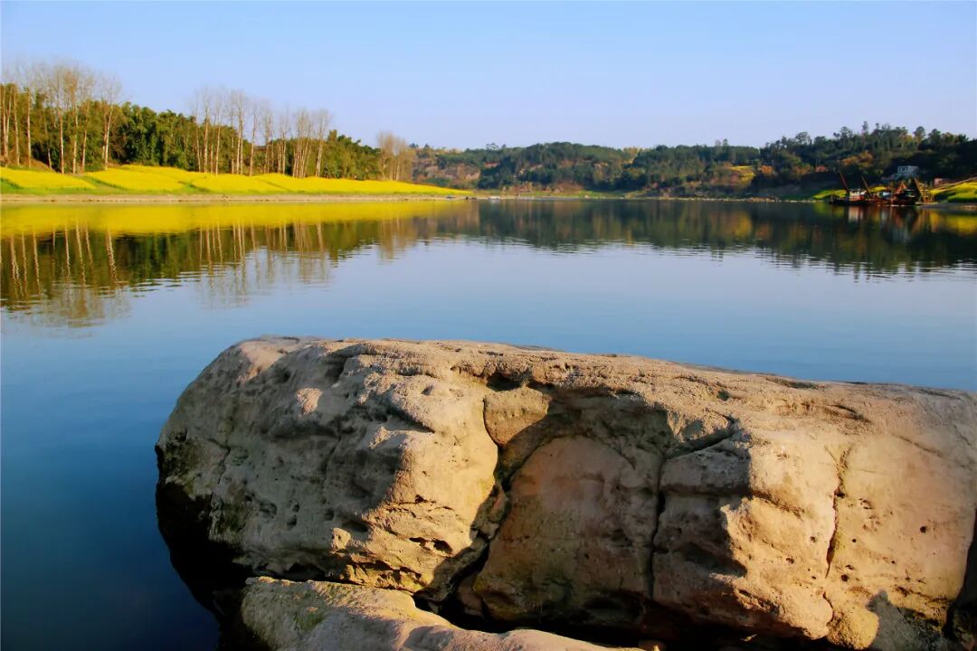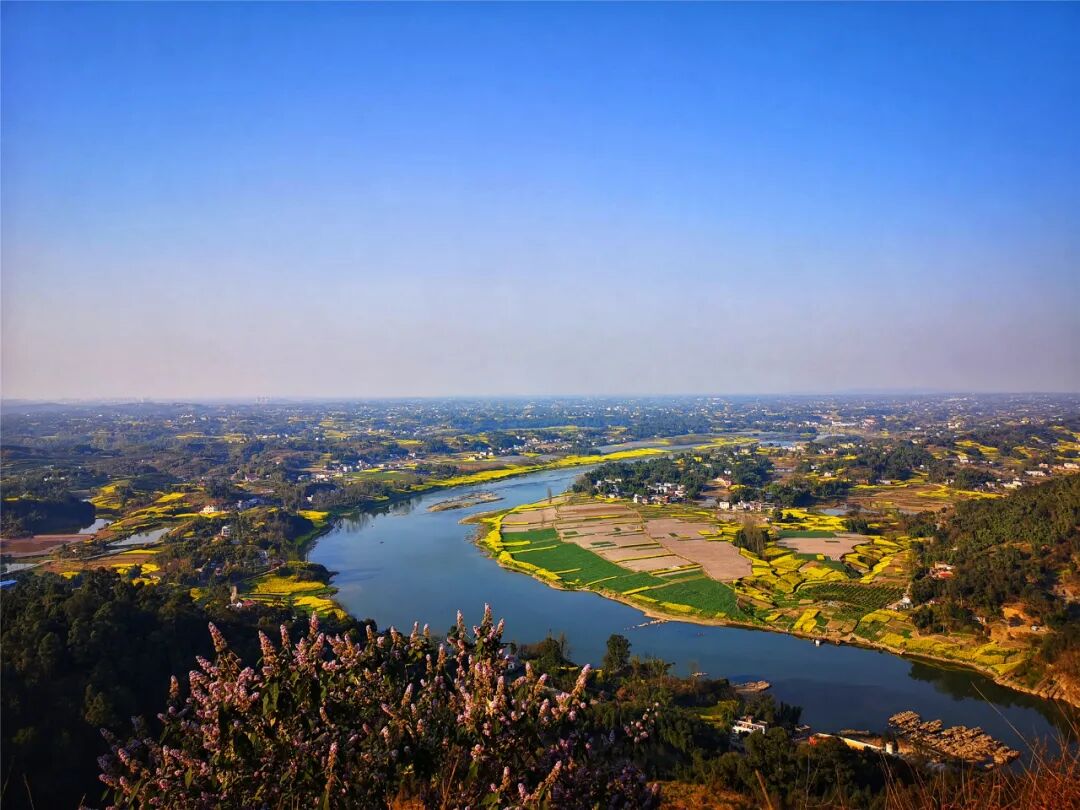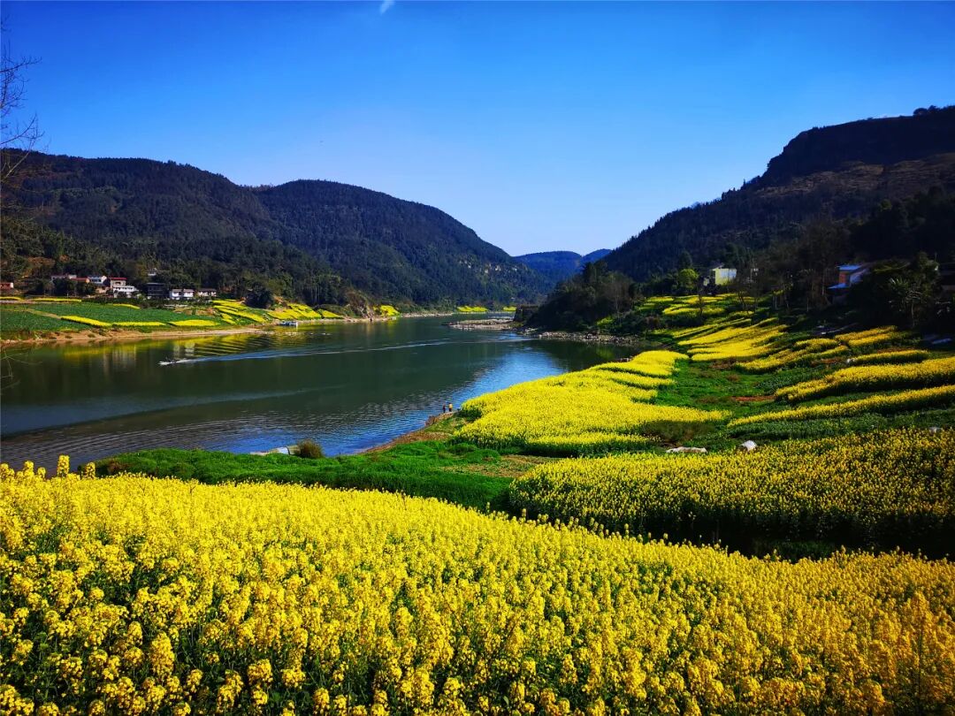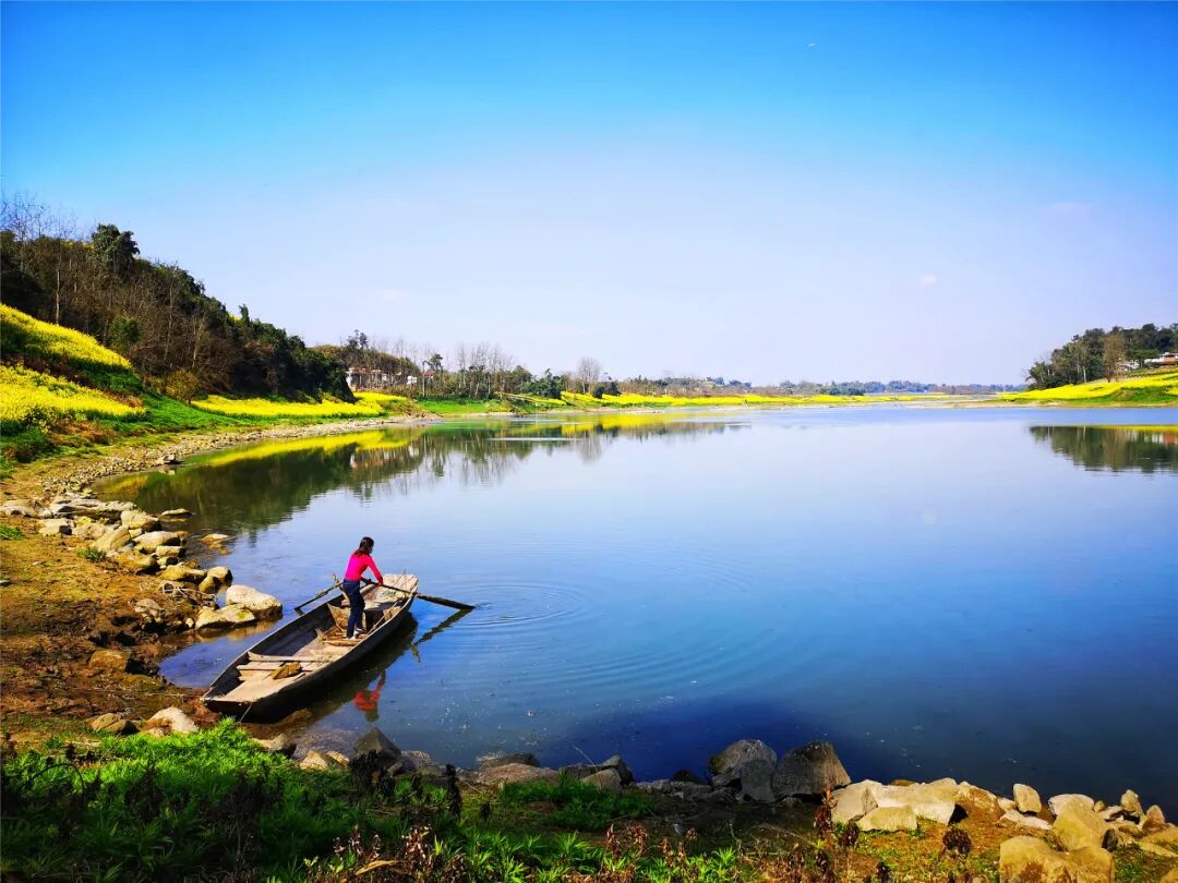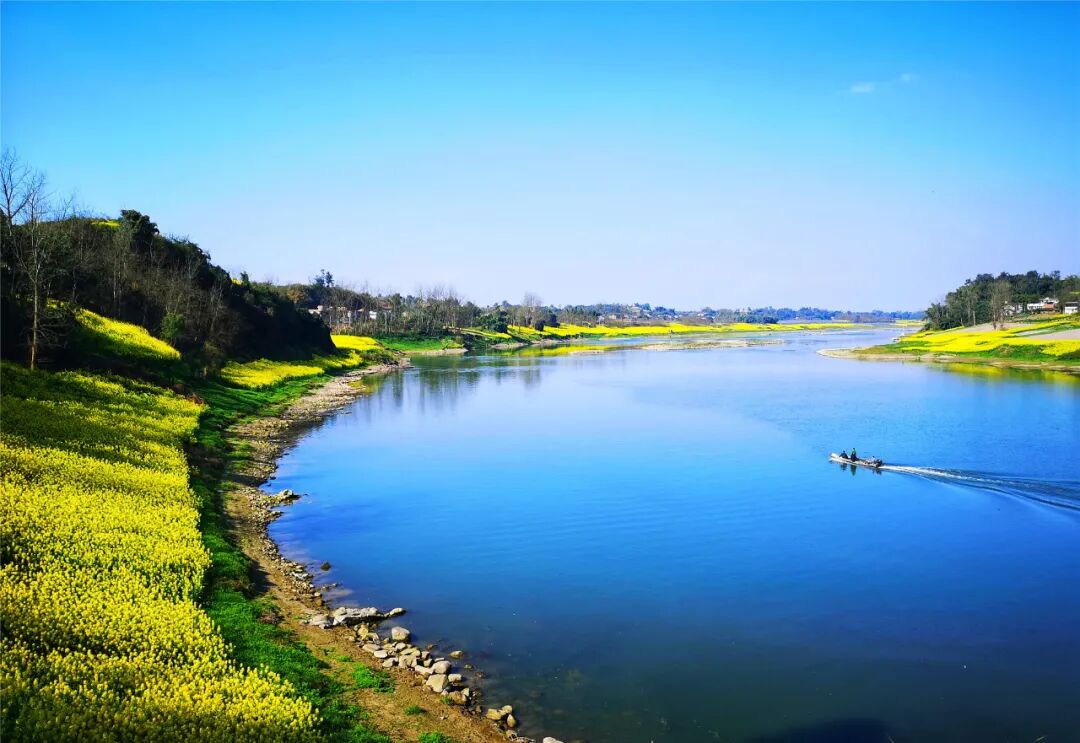 蓝天白云碧水青山,春日里遍地菜花把沱江两岸装扮得一地金黄。