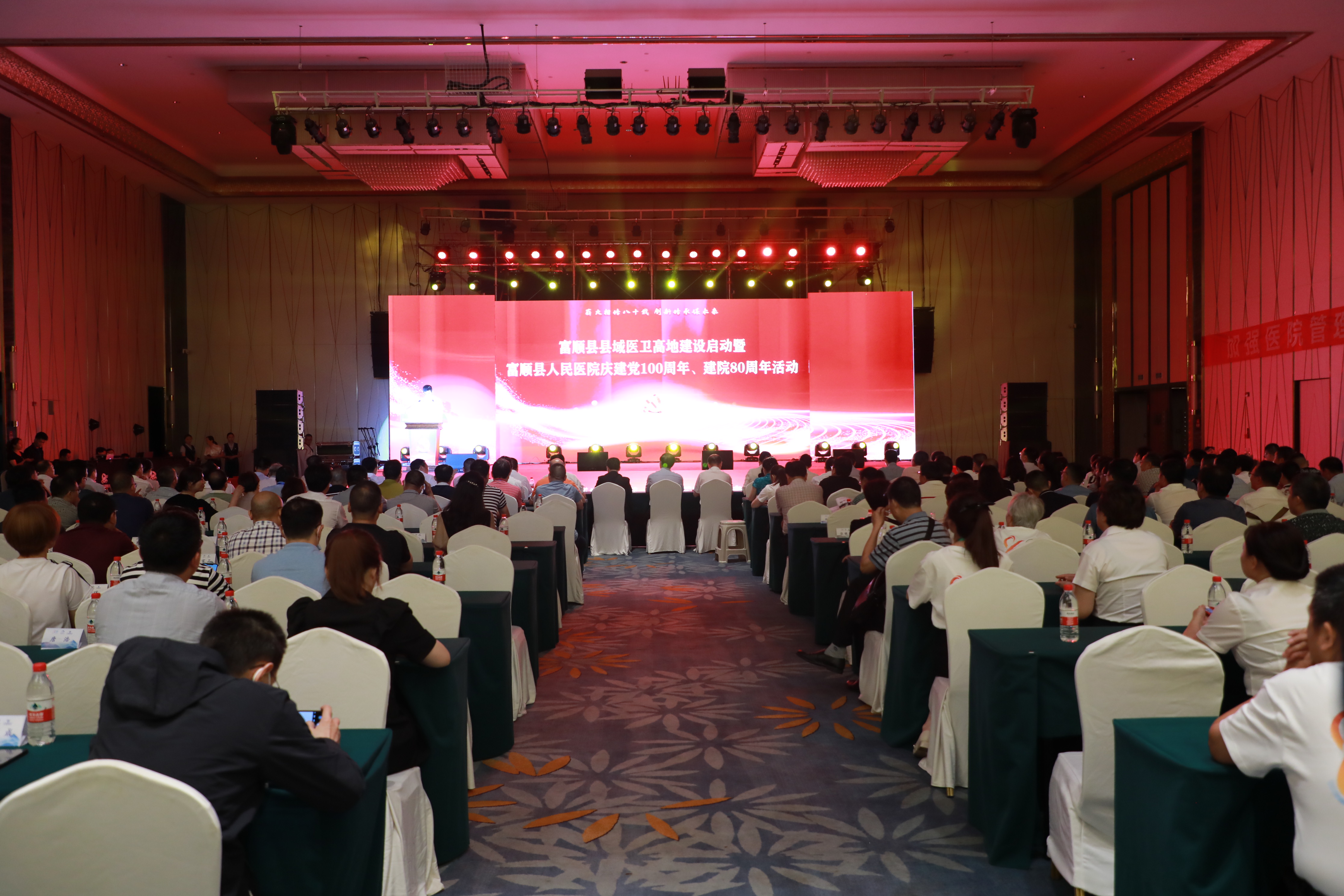 6月17日,富顺县县域医卫高地建设启动暨富顺县人民医院庆建党100周年、建院80周年活动在瑞祥大酒店顺利举行。县四家班子主要领导及分管联系领导,市卫生健康委相关领导,富顺县人民医院“四大医学中心”特聘、特邀专家21人,全省其他市州医院院领导170余人,以及县委组织部、县卫生健康局、县文化广电旅游局、县应急管理局、县生态环境局、县综合执法局等县级相关部门负责人参加活动。