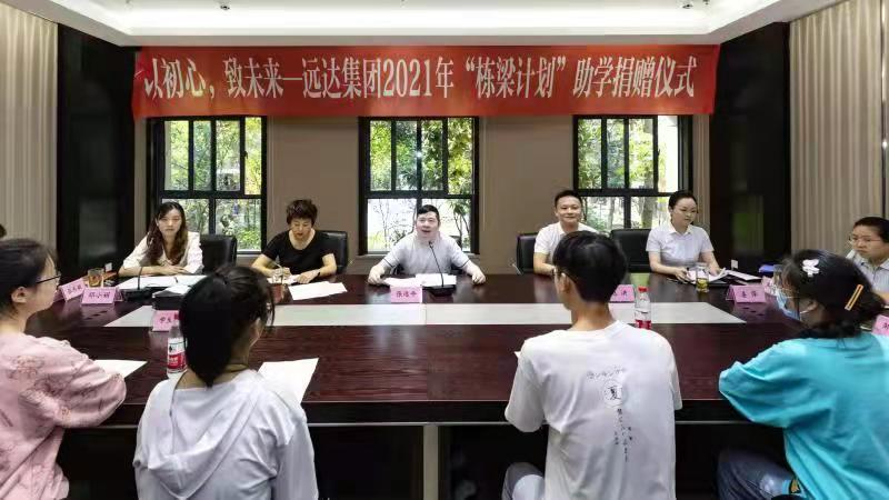 8月31日,远达集团2021年“栋梁计划”定向助学捐赠仪式在集团总部会议室举行。远达集团董事长、总裁张远平,琵琶镇党委负责人亲临助学捐赠仪式现场,此外远达集团、琵琶镇相关负责人及土地村相关人员也应邀出席。