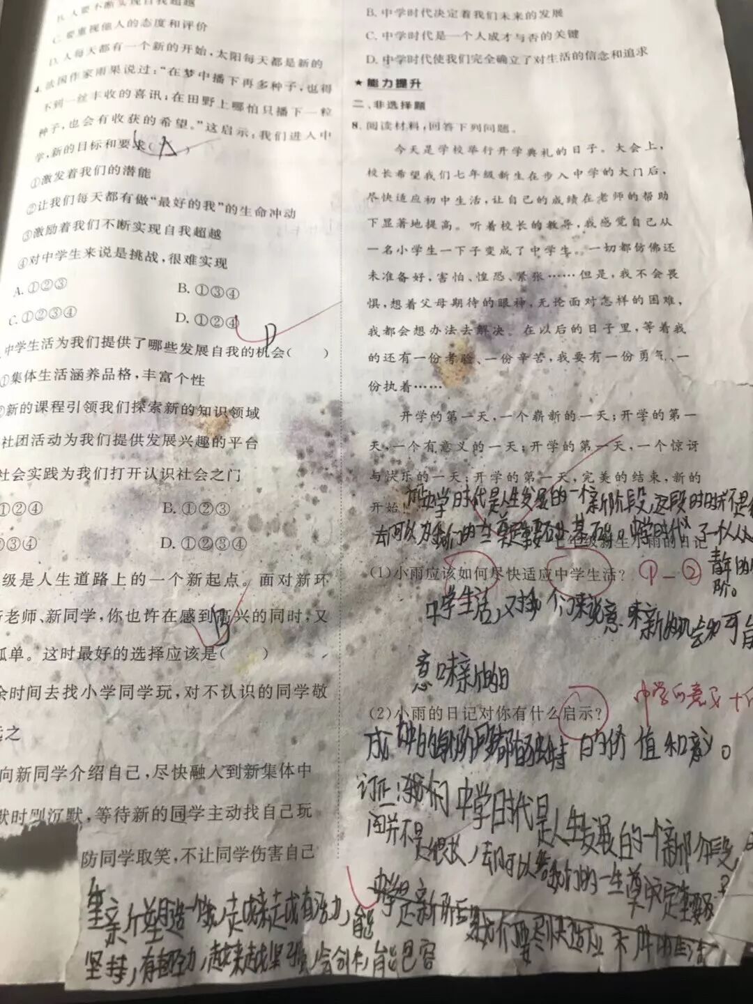 我也成为周日前往办公室加班并差点被保安锁在教学楼里的那种老师了。 批作业的时候着急用红笔写了学生的名字,刚写到一个“高”字就被学生制止了:“老师!不能用红笔写名字,会死人的。”9月16日