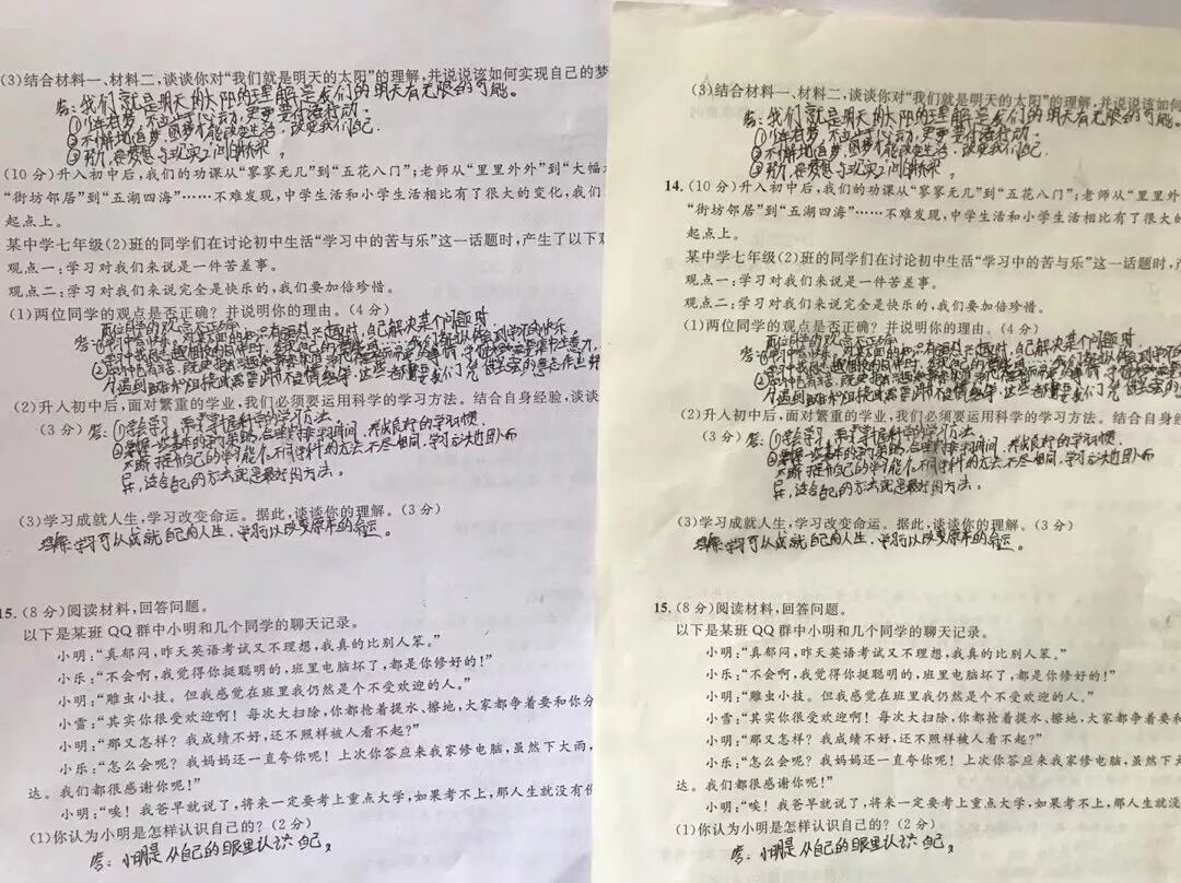 比如直接把别人的卷子连答案一块儿复印一份交上来。